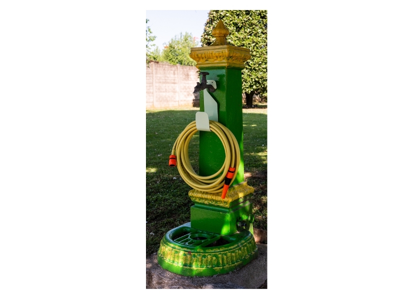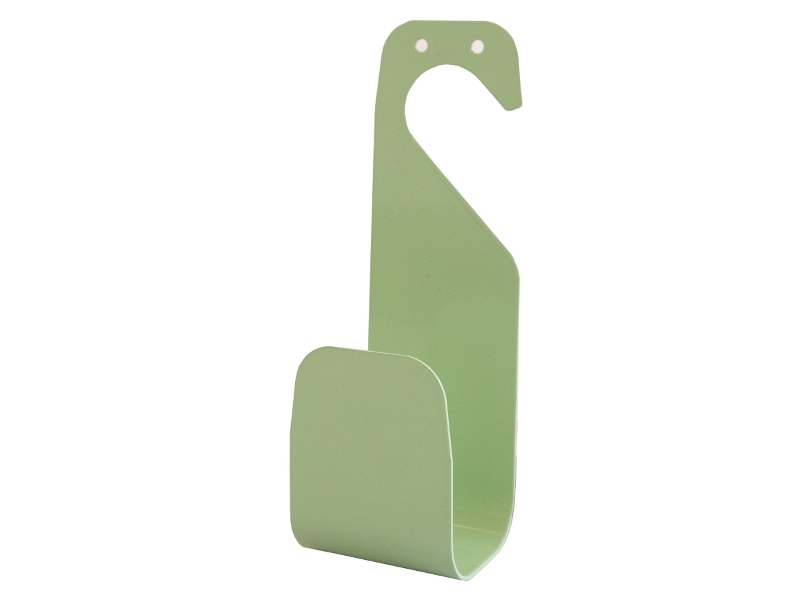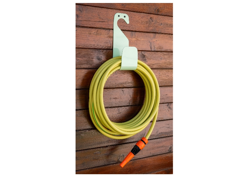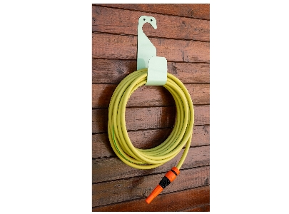 Gancio portatubo in acciaio verniciato con polvere poliestere atossica: utile per raccogliere non solo tubo da irrigazione, ma anche cavi elettrici, catene ecc. grazie alla sua struttura particolarmente robusta.