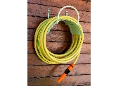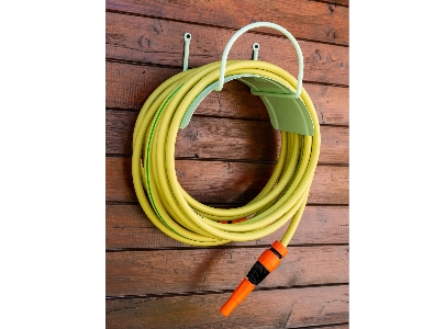 Wall hose hanger made of steel and coated with non-toxic polyester powder, useful to hold watering hose as well as electric wire, chains etc. thanks to its sturdy structure.